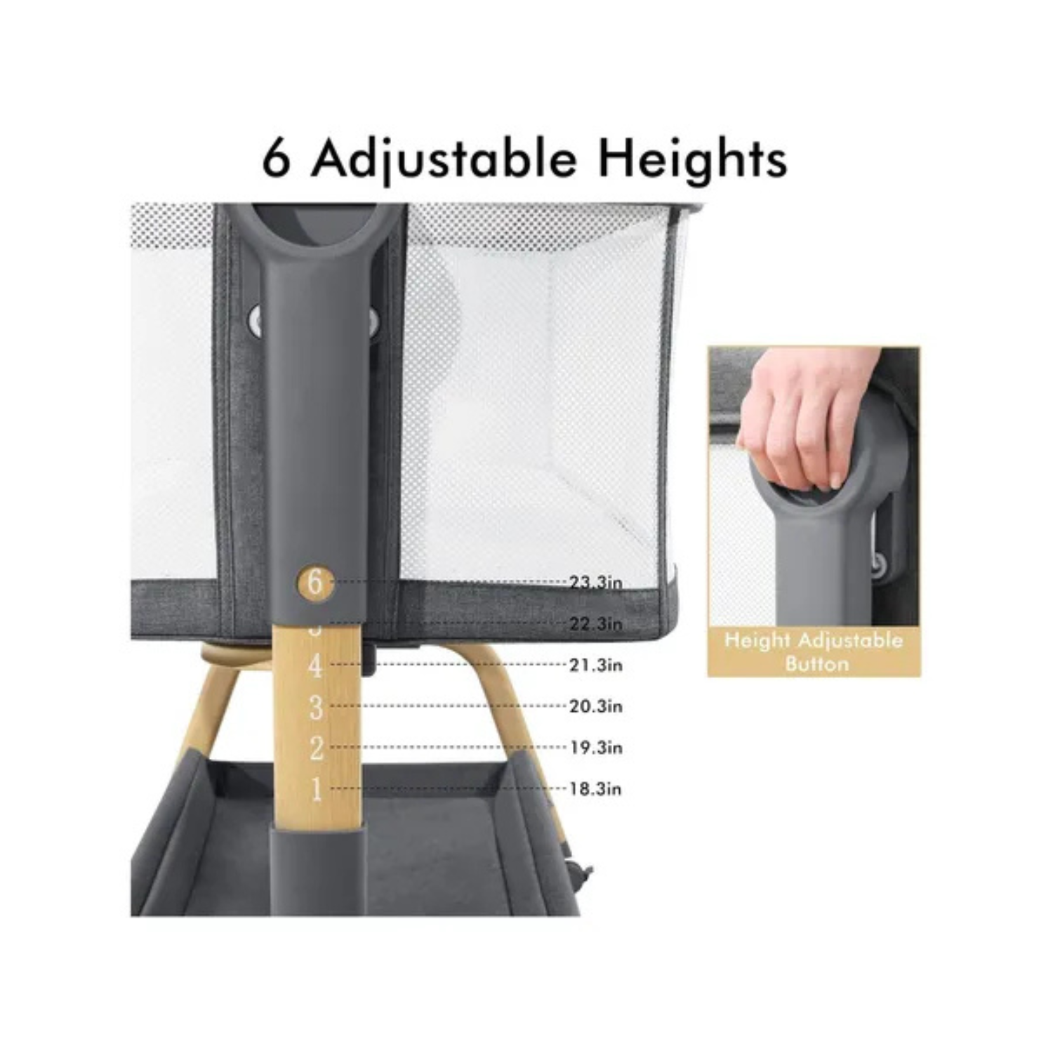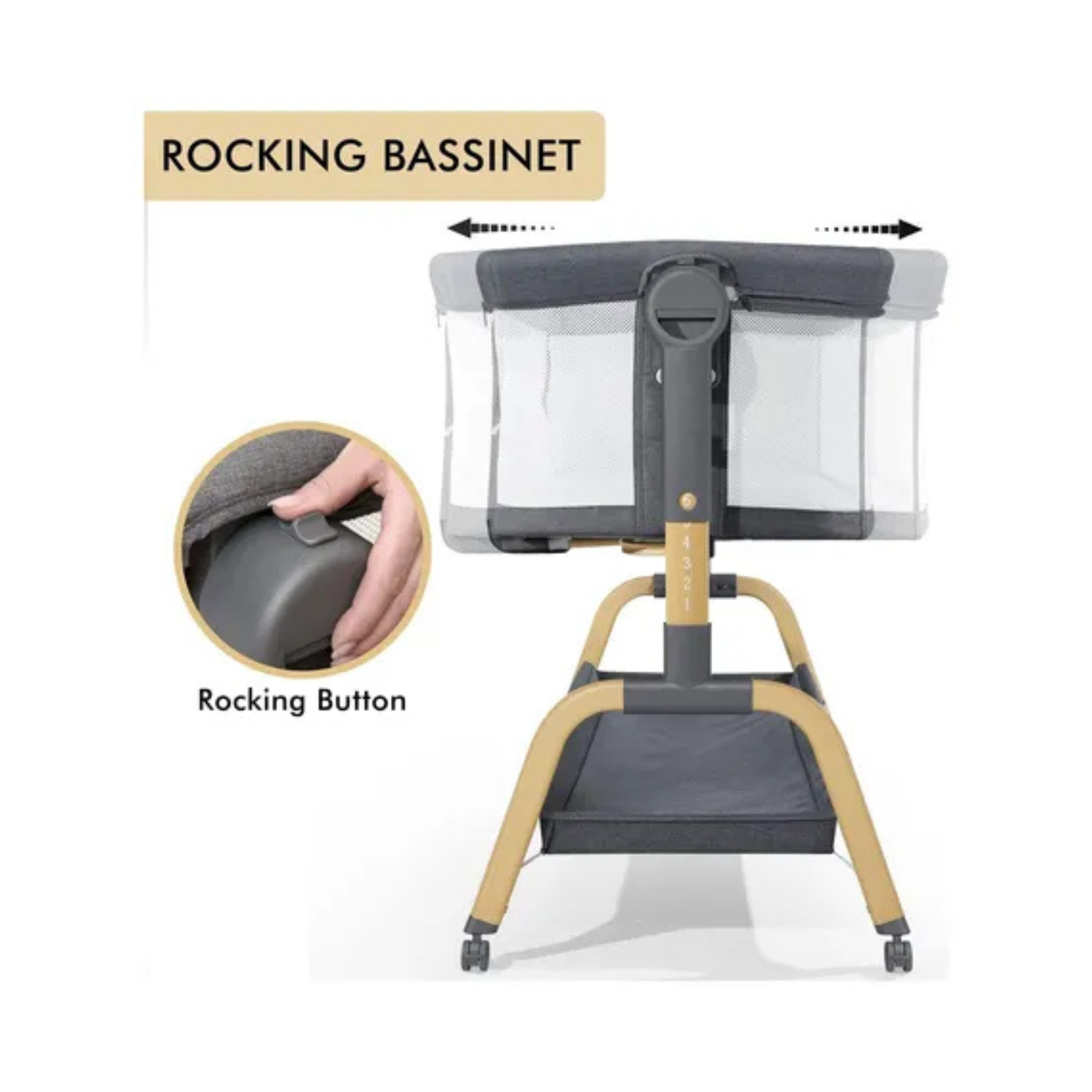 Este moisés mecedor está diseñado para un colecho seguro, con 6 niveles de altura ajustables.