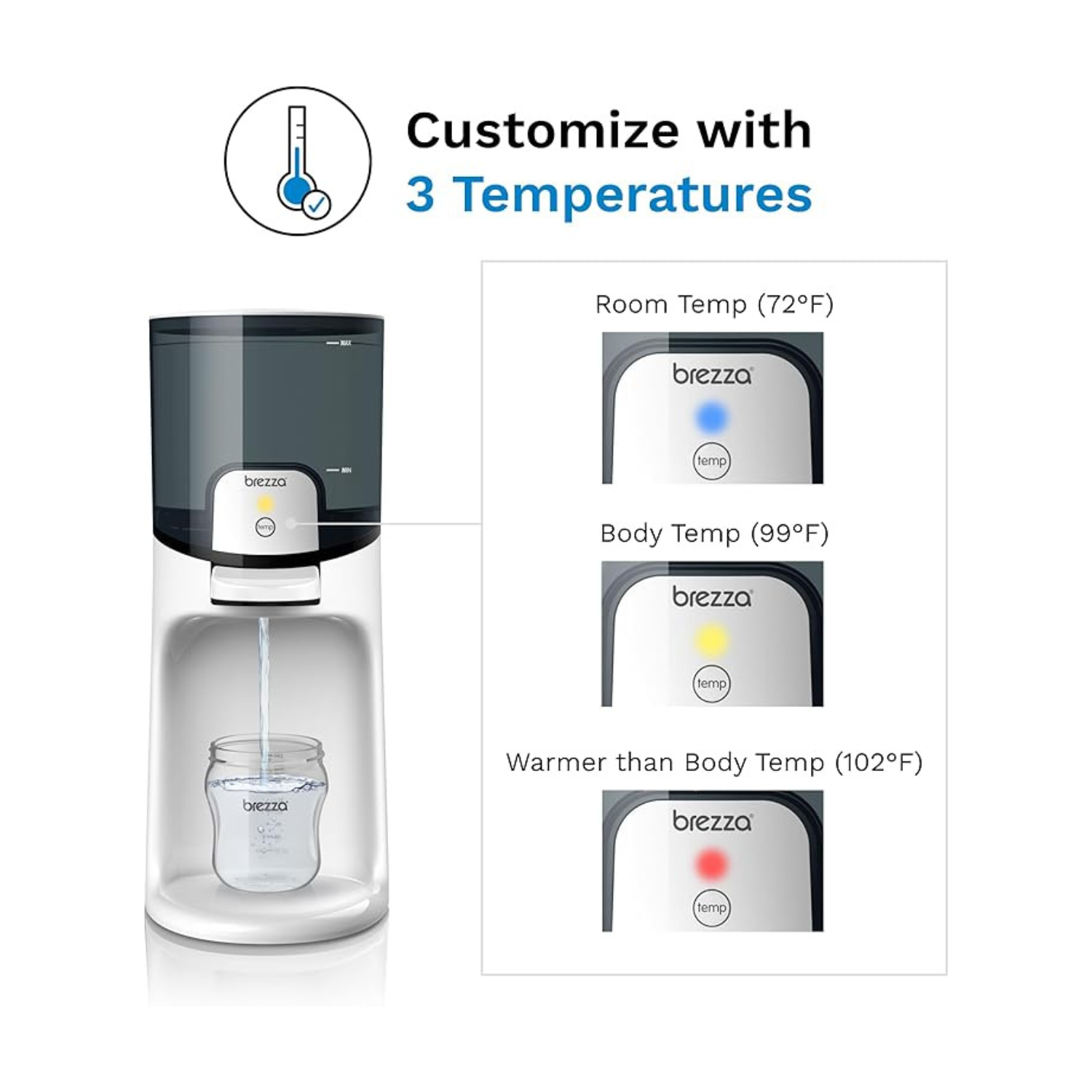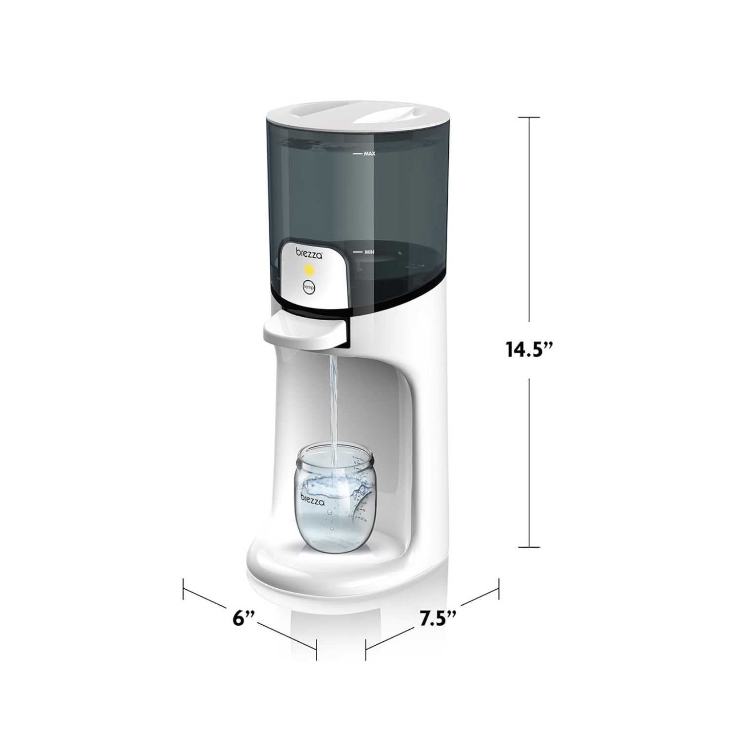 Baby Brezza mantiene el agua caliente lista en todo momento — con temperatura ajustable para la comodidad de tu bebé.
